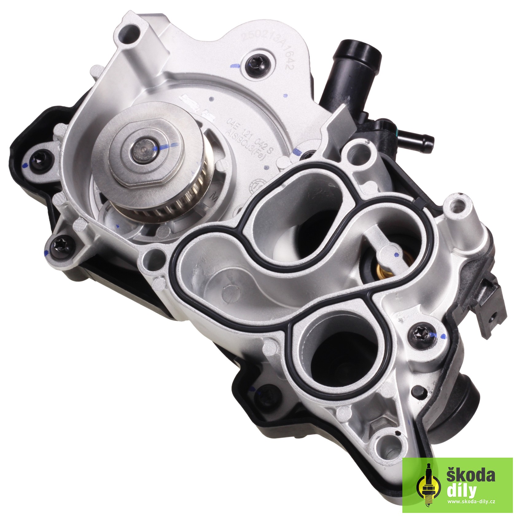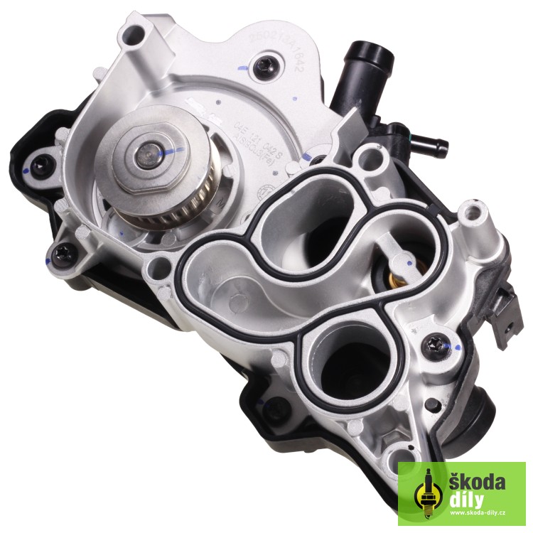 Vodní pumpa chladicího okruhu motoru se skříní a víkem termostatu. Určeno pro vozidla s motory 1.2TSI 63kW/77kW/81kW a 1.4TGI 81kW, 1.4TSI 92kW/110kW, 1.4TSI IV 110kW.