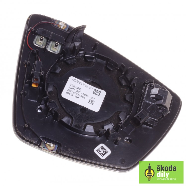 Sklo pro levé vnější zpětné zrcátko s nosnou deskou, vyhřívané s automatickým stmíváním a asistentem hlídání mrtvého úhlu (Blind Spot Detect).