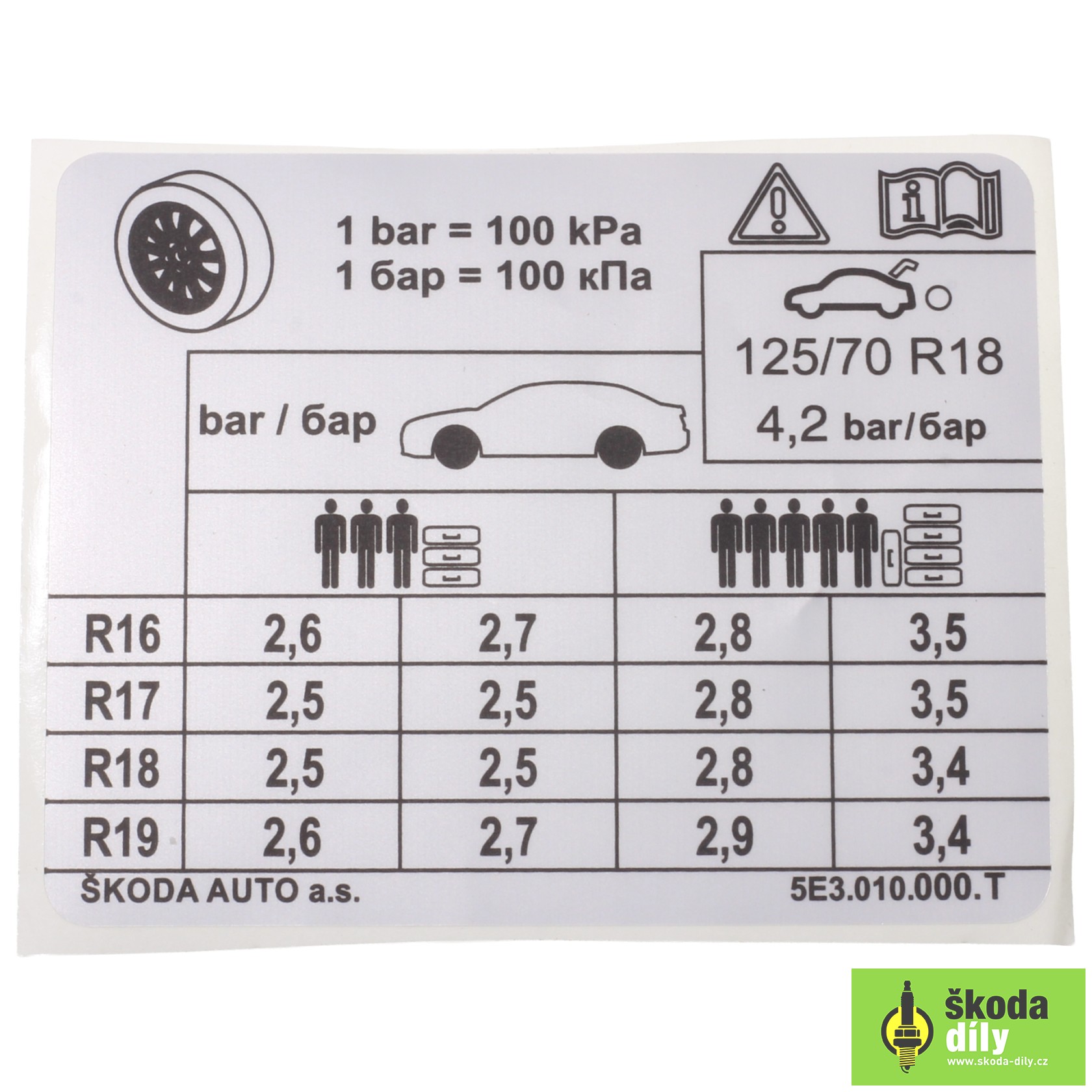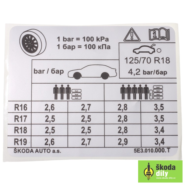 Štítek pro tlak v pneumatikách Škoda | škoda-díly.cz
