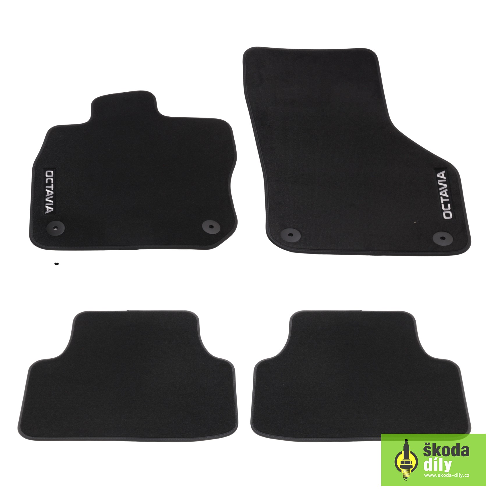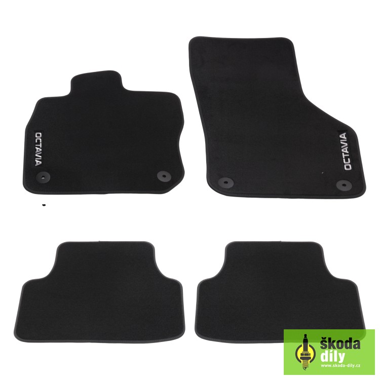 Sada 4ks textilních koberců pro vůz Škoda Octavia 4 MHEV, ideální pro použití v letním období, přesně pasující koberce s fixačními otvory pro pevné připevnění.