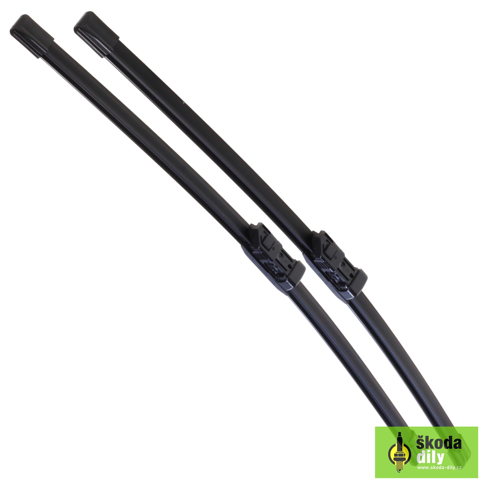Sada stěračů (stíracích lišt) aero pro přední sklo, 2ks stírací lišty pro přední okno, určeno pro model Škoda Fabia2 a Škoda Roomster.