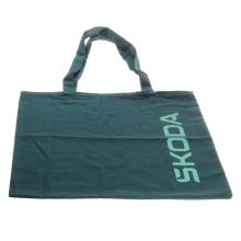 Textilní nákupní taška v barvě zelená emerald s nápisem "ŠKODA Plus" v barvě zelená elctric. Taška je vyrobená ze 100% bavlny.